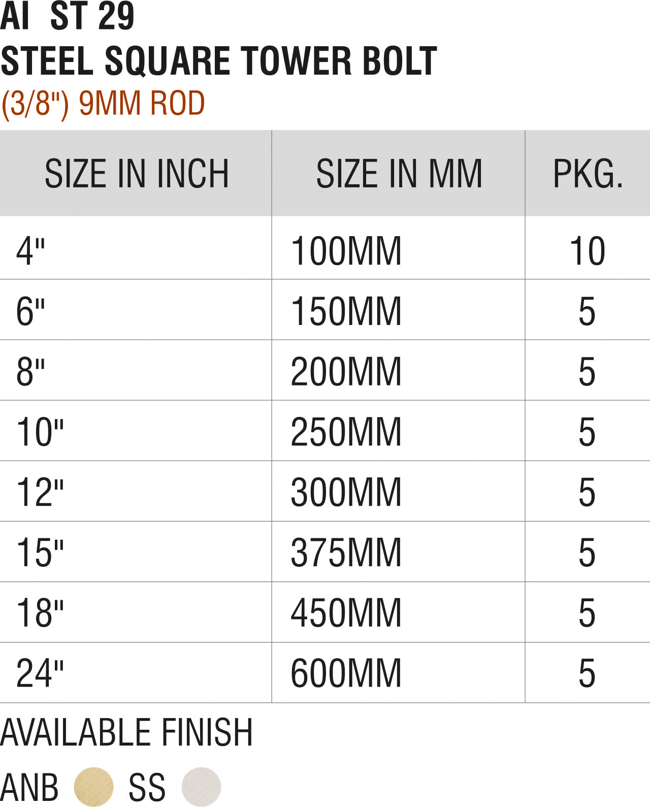 Secure your doors with our sleek and sturdy stainless steel tower bolts. Combining functionality with style.